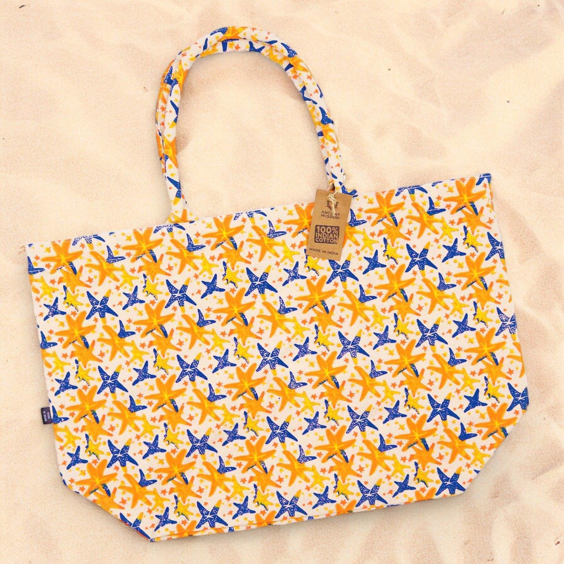 Strandtasche 'Meereszauber' mit Seestern-Druck | 100% Baumwolle