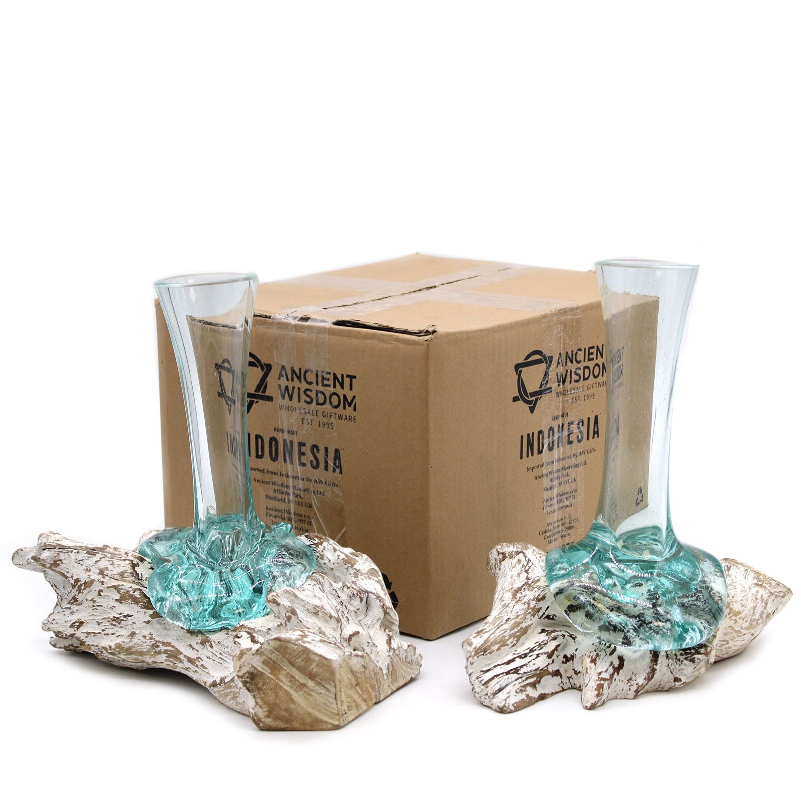 Vase Medium - Geschmolzenes Glas auf Weißholz | Einzigartiges Naturkunstwerk